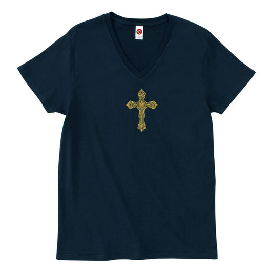 ゴシックハート+ゴールド刺繍VネックTシャツ