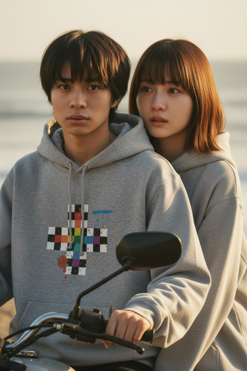「ヴィンテージ・バイクが鈍い光を浮かべる時」フーディ 、パーカー