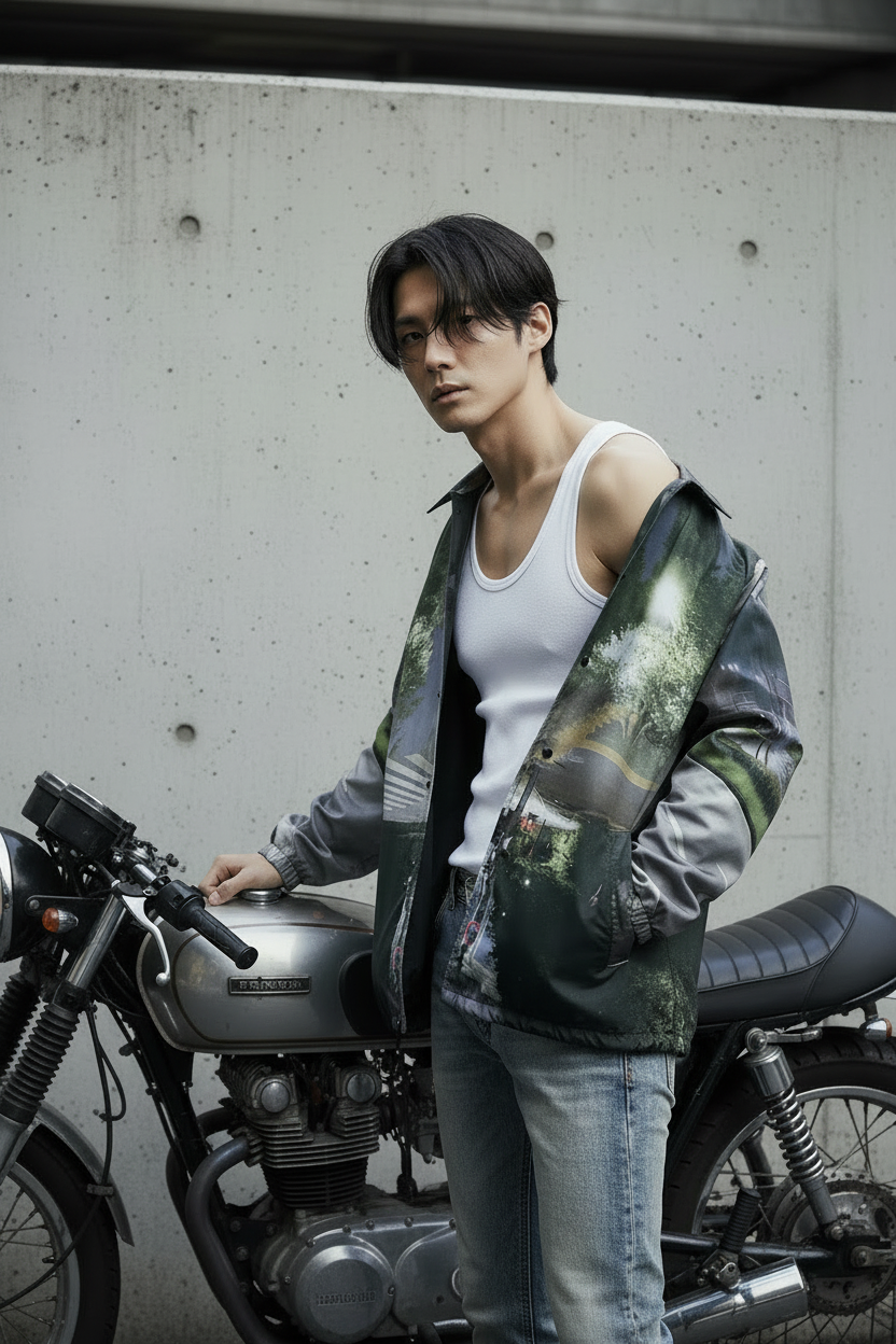 About usバイクに乗る時の昂揚、スピード(風)の中にいる時のリアルを、普段も感じさせる服。