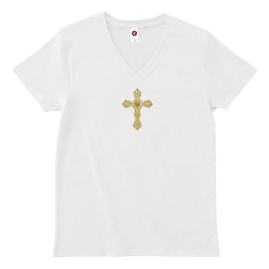 ゴシックハート+ゴールド刺繍VネックTシャツ