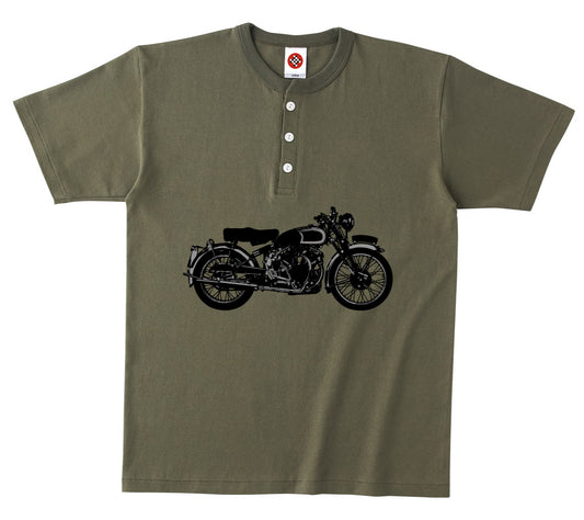 「ヴィンテージ・バイクが鈍い光を浮かべる時」ヘンリーネックTシャツ