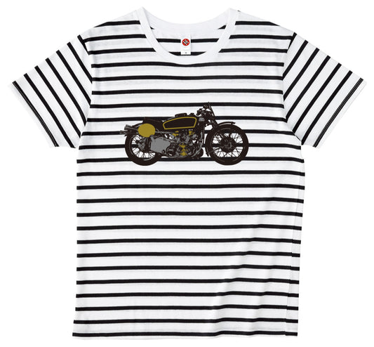 「金と銀に煌めくカフェレーサー」ボーダー Tシャツ